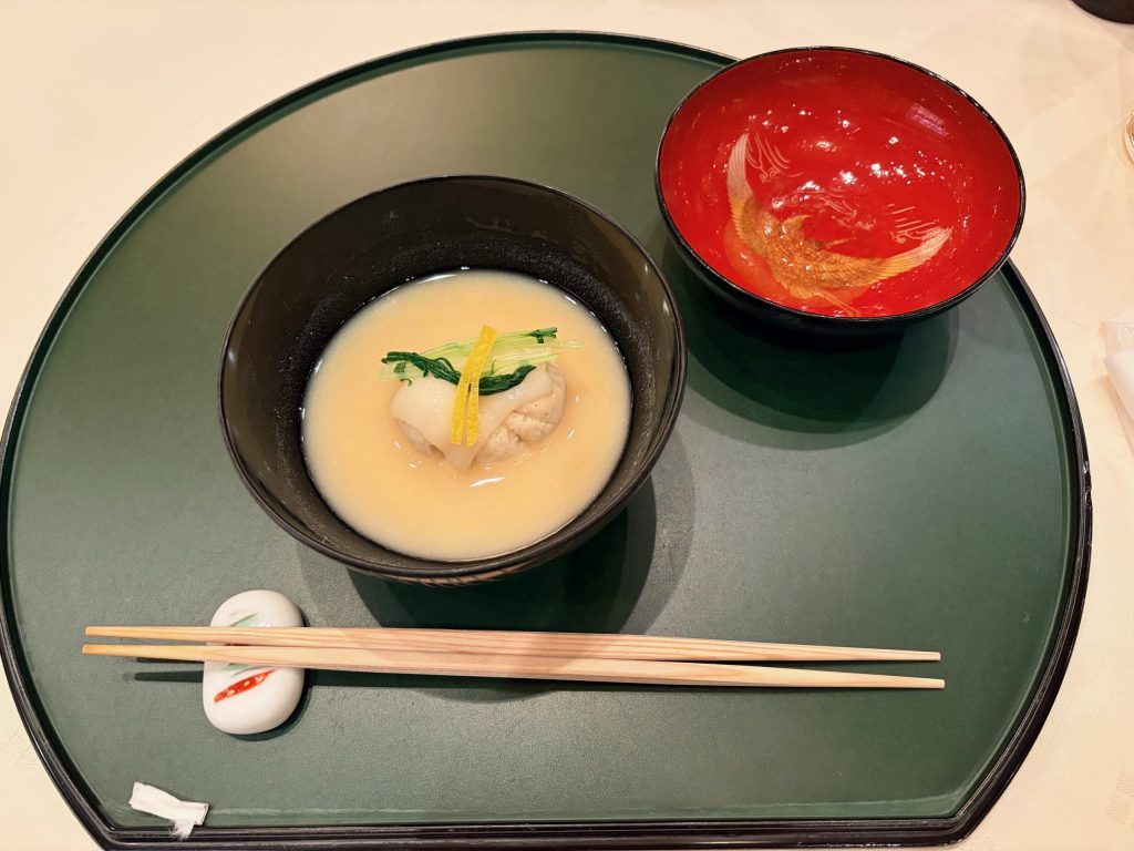 乾杯の声を合図に、ホテルのご担当者の方がお祝いにご提供くださったスパークリングワインで、祝賀会がスタートです。祝賀会のお食事は、「お箸で気兼ねなく食事ができるように」との社長の考えから、和食をセレクトしました。前菜からスタートしたお食事は、季節の食材をふんだんに使用した、全11品、和のスイーツで締めくくられました。社員同士、ゆっくりと美味しいお食事と歓談を楽しむことができました。